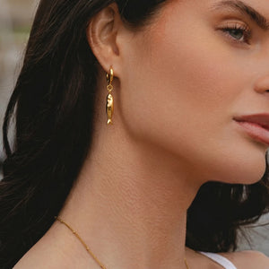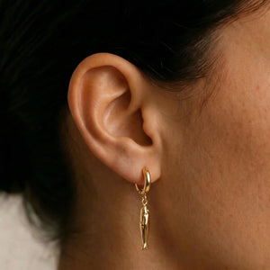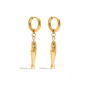 The smooth, polished finish reflects light beautifully, while the dangling silhouette adds subtle movement — making it perfect for elevating even the simplest looks. It’s a statement, but one that feels refined, not overpowering.