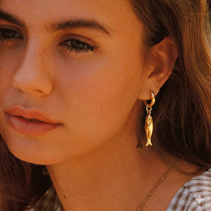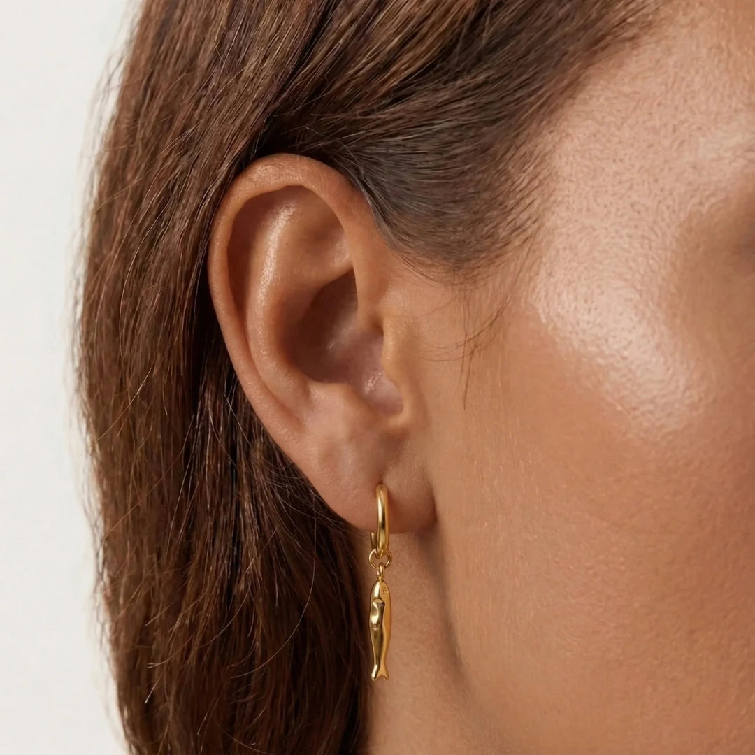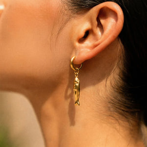 Inspired by the graceful symbolism of the Matsya, our Matsya Hoops bring together fluid design and everyday elegance. Featuring sleek gold hoops paired with delicately sculpted fish charms, this piece feels both artistic and effortlessly wearable.