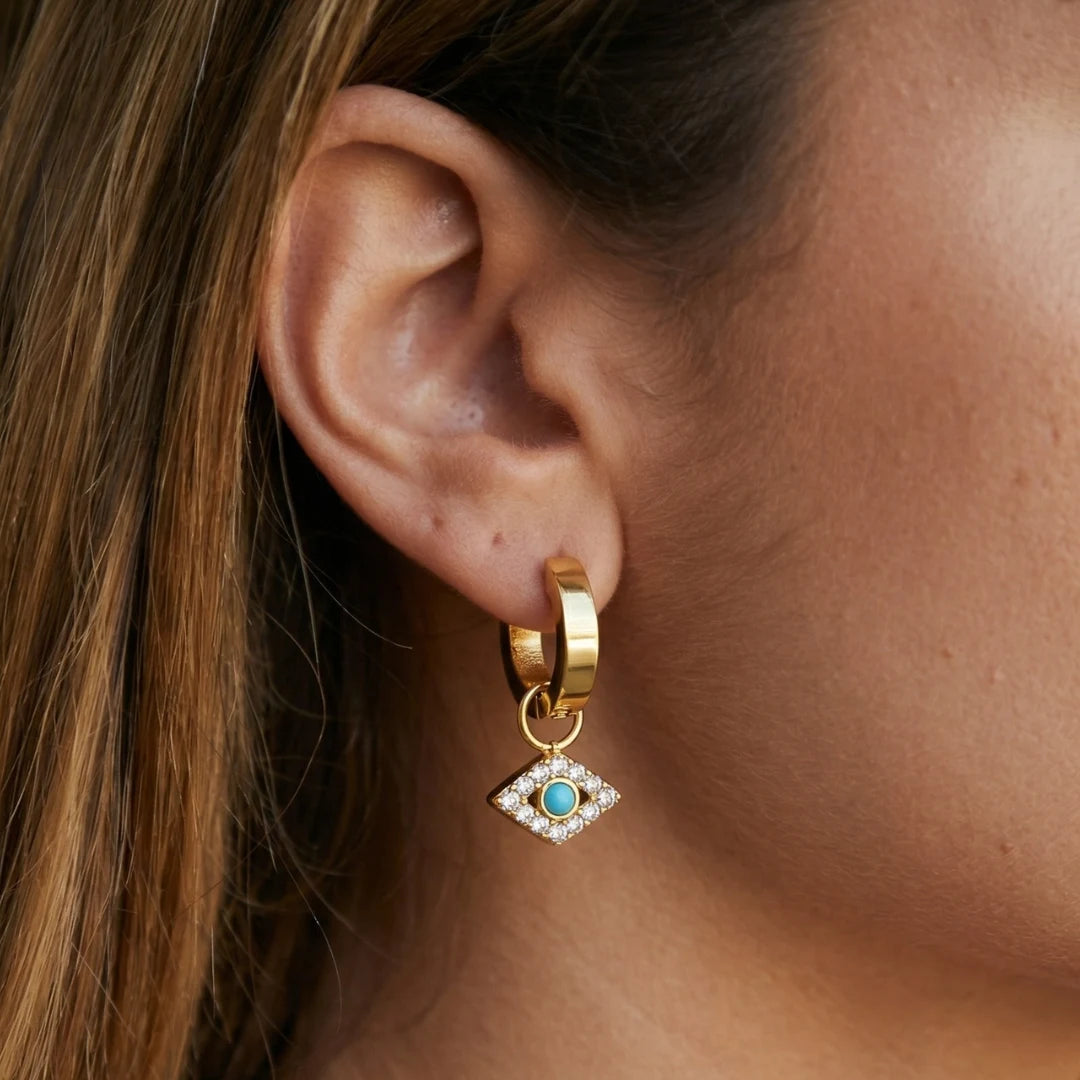 - Stone: Premium cubic zirconia with enamel evil eye detail