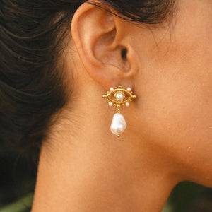 Pearl Nazar Drop Earrings