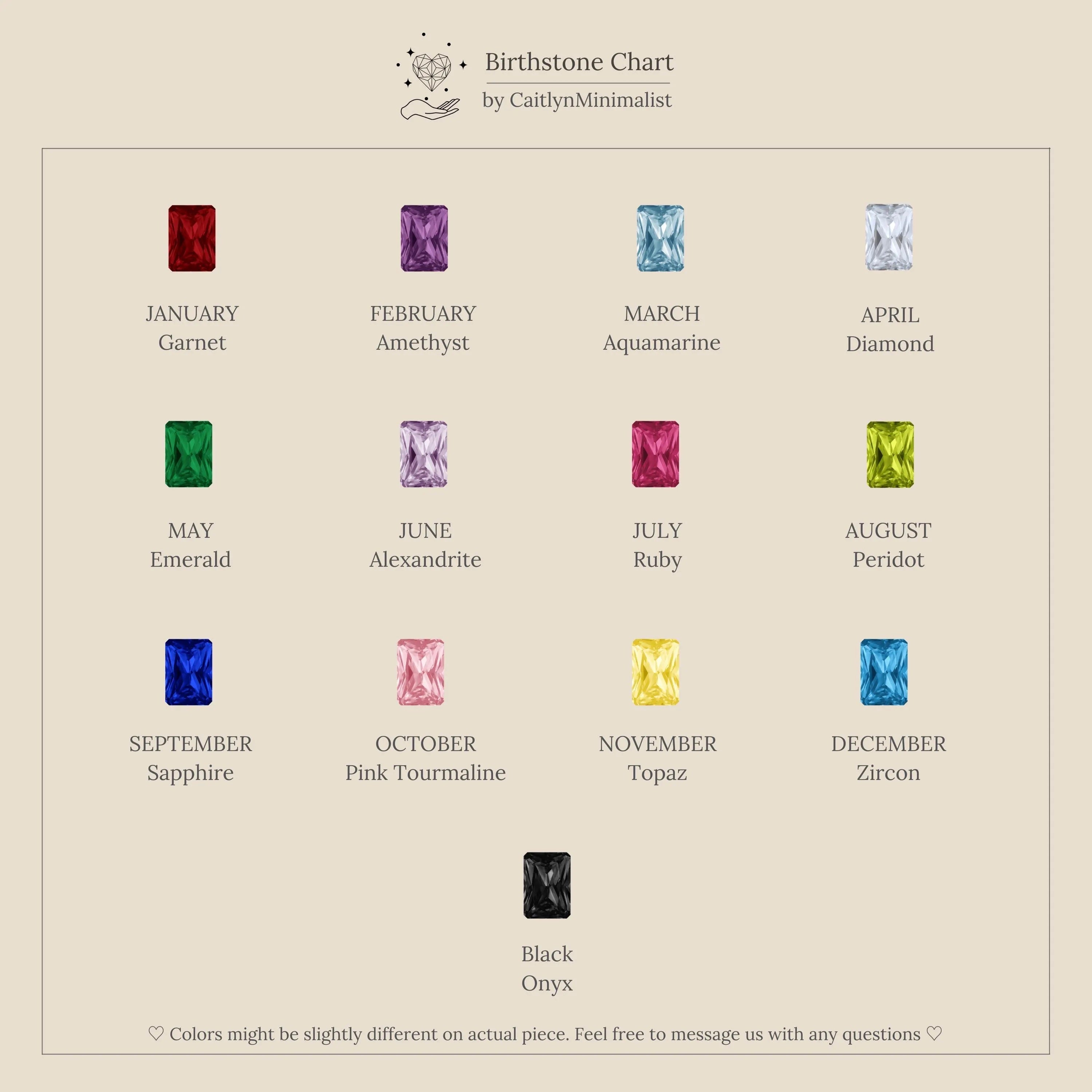 - Featuring ~6x4mm Emerald-Cut and Pear-Cut CZ Birthstone on a dainty Cable Chain